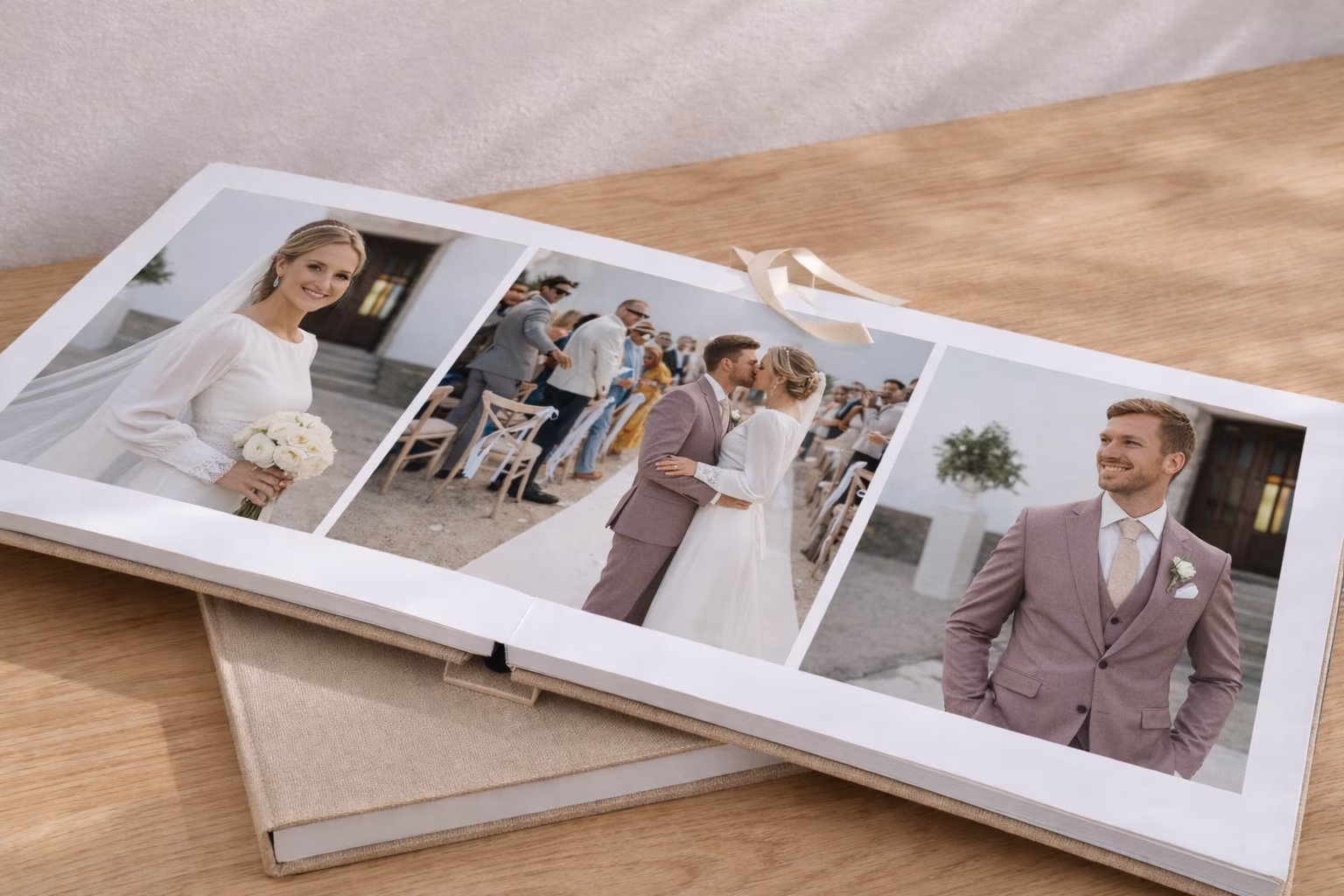 A wedding photographer typically costs $3,000+. A videographer adds another $2,000+. A premium wedding album alone can range from $300 to $1,500.